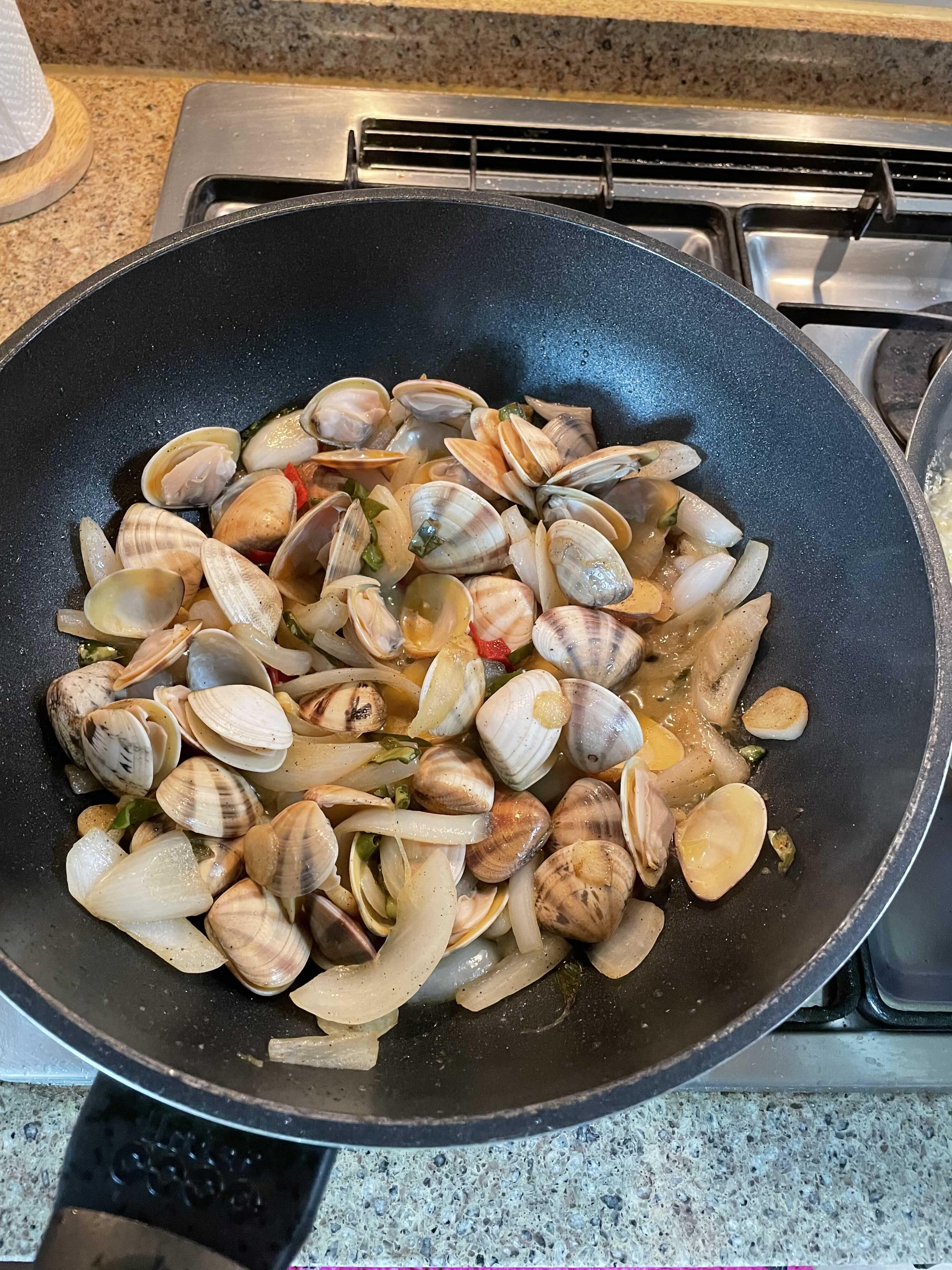집에 도착해서 잡아온 비단조개를 해감하고 봉골래 파스타~
